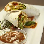 다이닝 룸에서 건강한 뷔페가 제공됩니다. 풀 바 바도 있습니다.
